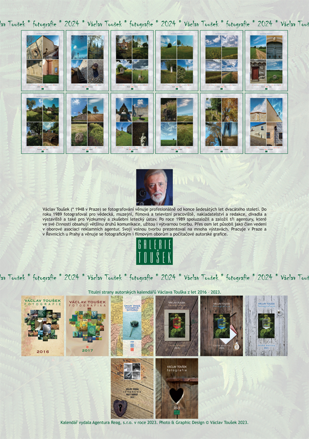 Titulní strana nástěnného kalendáře A3, který vydala na konci roku 2023 Agentura Reag, s.r.o. a vytiskla tiskárna PRINCO - divize iDigitisk Praha 4. Photo & Graphic Design kalendáře © Václav Toušek.
