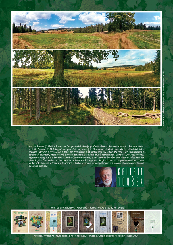 Titulní strana nástěnného kalendáře A3, který vydala na konci roku 2024 Agentura Reag, s.r.o. a vytiskla tiskárna PRINCO - divize iDigitisk Praha 4. Photo & Graphic Design kalendáře © Václav Toušek.