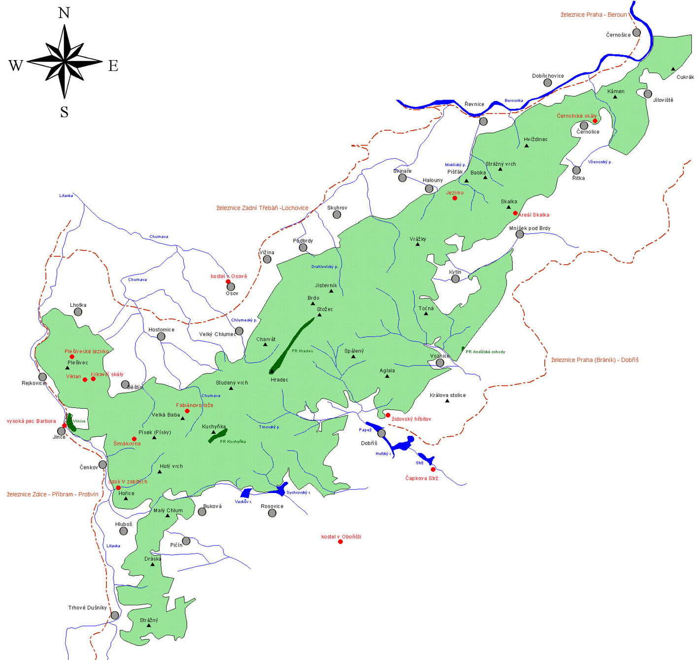 Hřebeny Brd - pohled od jihu (zdroj: www.brdy.info)