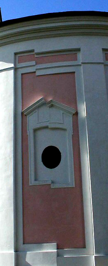 díky poddolování. Při rekonstrukci zachováno v omítce pro připomenutí.