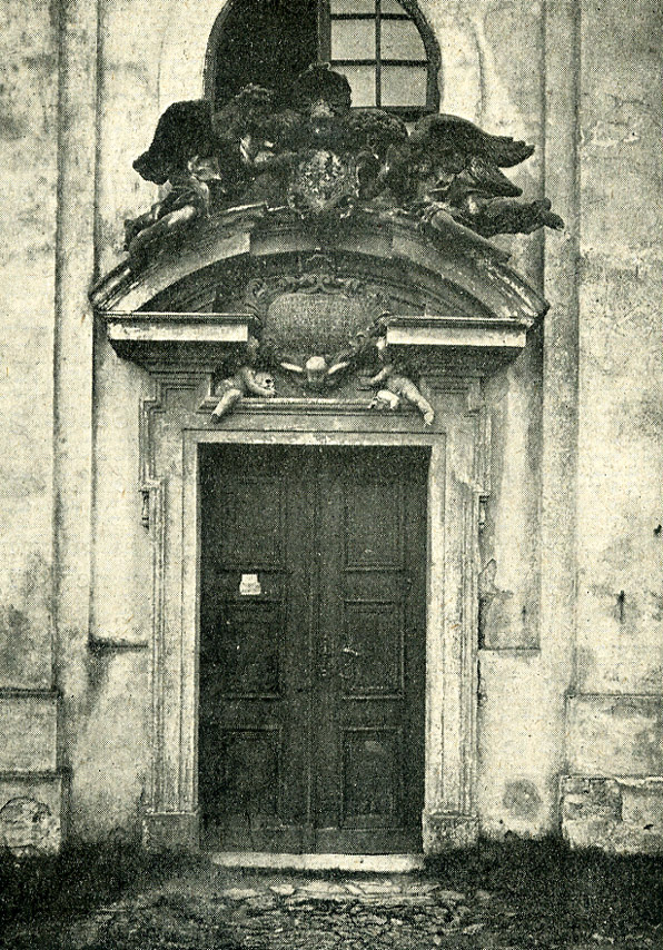 Portál kostelíka v roce 1924 a 2005.