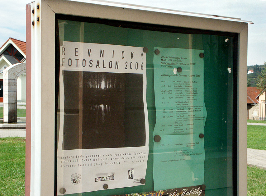 Pozvánka na řevnický Fotosalon a plakátek umístěný u expozice fotografií Václava Touška.
